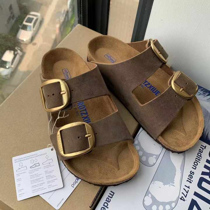 Sandali in Sughero con Doppia Cinghia e Fibbia - Stile Retrò Estivo per Coppie, Sandali e Ciabatte in Vera Pelle con Doppia Cinghia e Punta Aperta