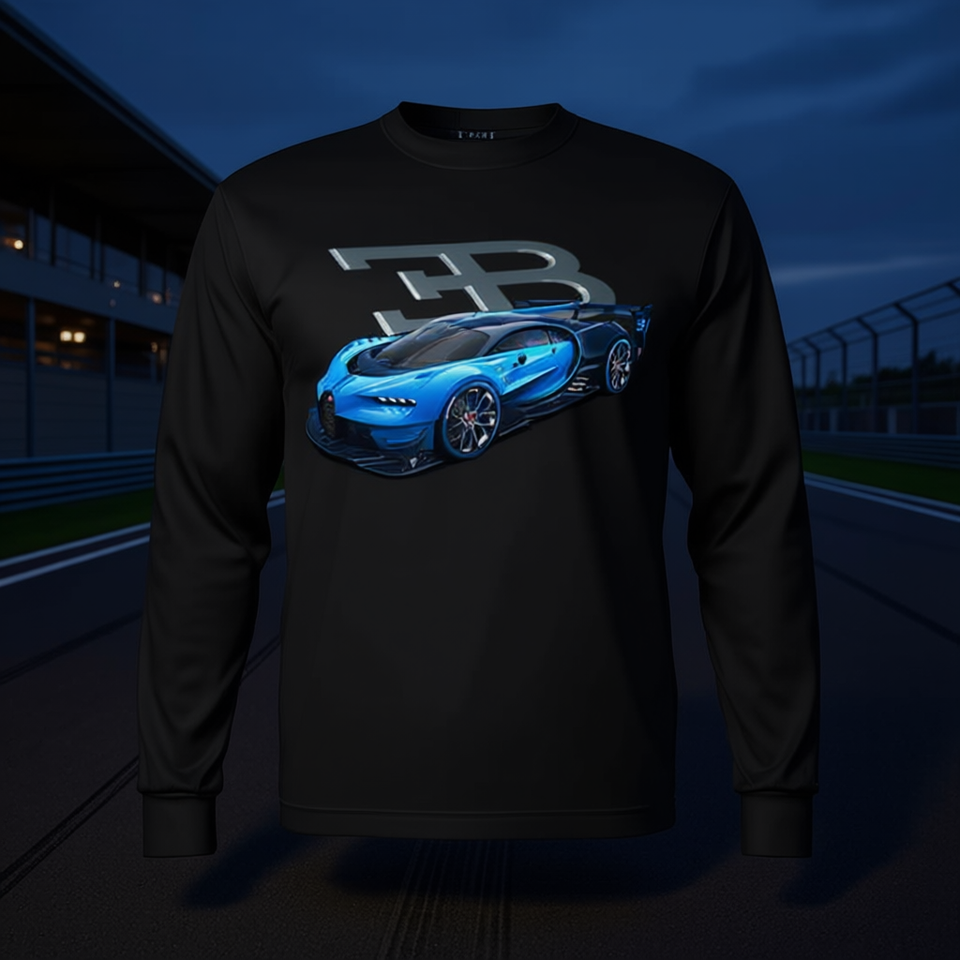 T-shirt a maniche lunghe Bugatti Chiron da uomo, girocollo, stampa digitale, abbigliamento promozionale