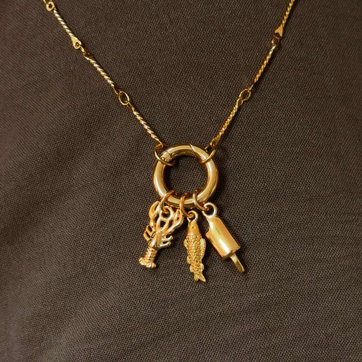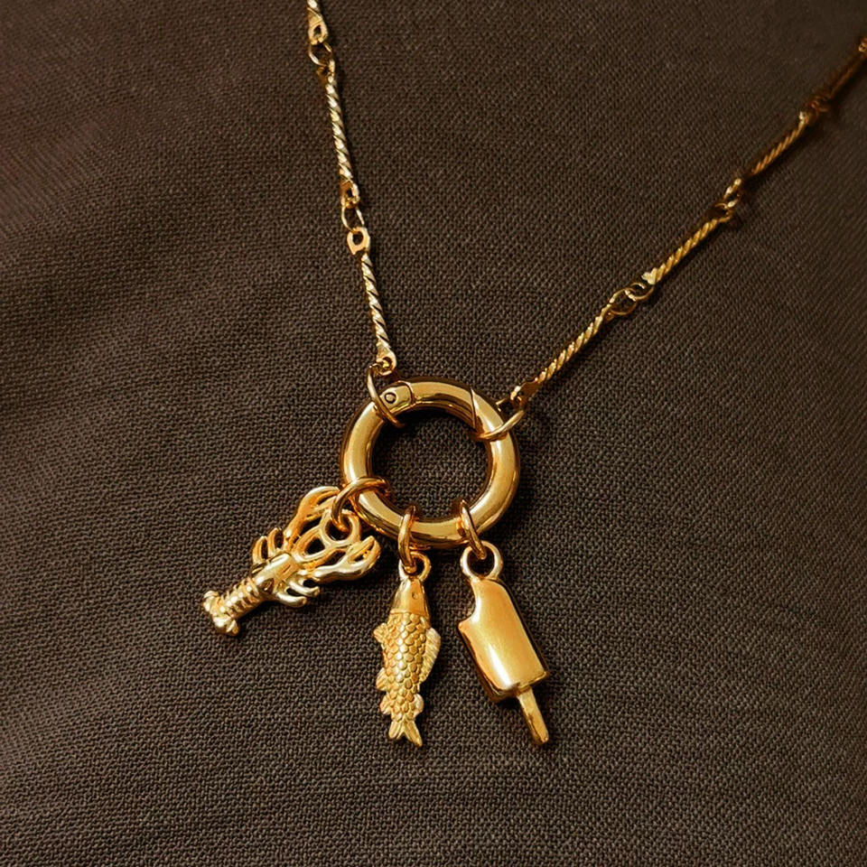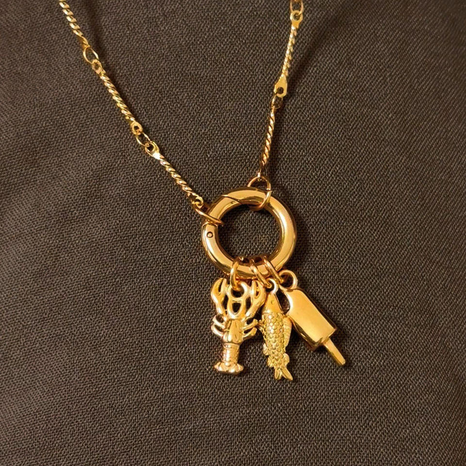 Crea la Tua Collana con Charm Personalizzabile in Oro 18k 24k Acciaio Inossidabile Fai-da-Te con Charm a Forma di Pesce Aragosta Gelato Gioielli Creativi