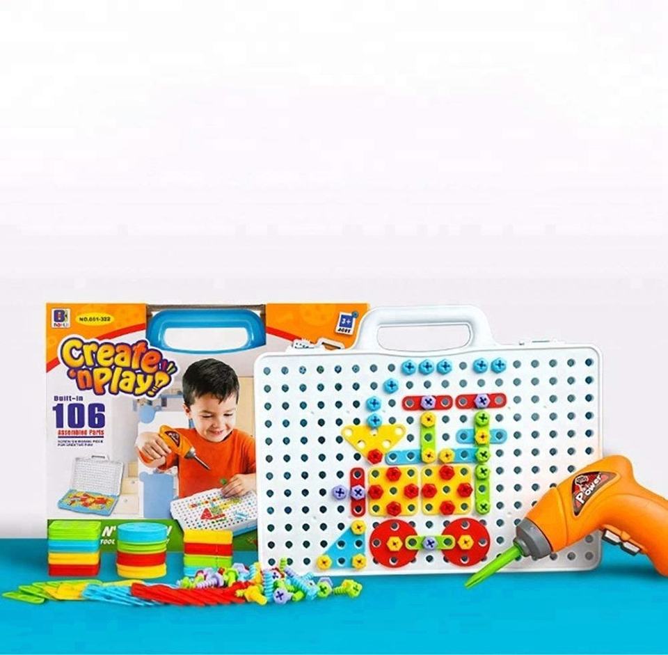 Set di Giochi con Blocchi da Costruzione con Trapano Giocattolo e Set di Utensili, Giochi Educativi di Costruzione per lo Sviluppo