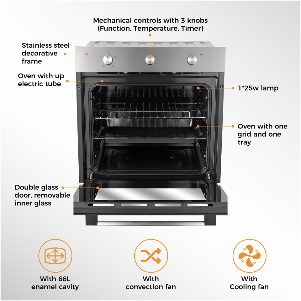 Ventola di convezione, Ventola di raffreddamento, Lampada del forno, Griglia, Vassoio per alimenti