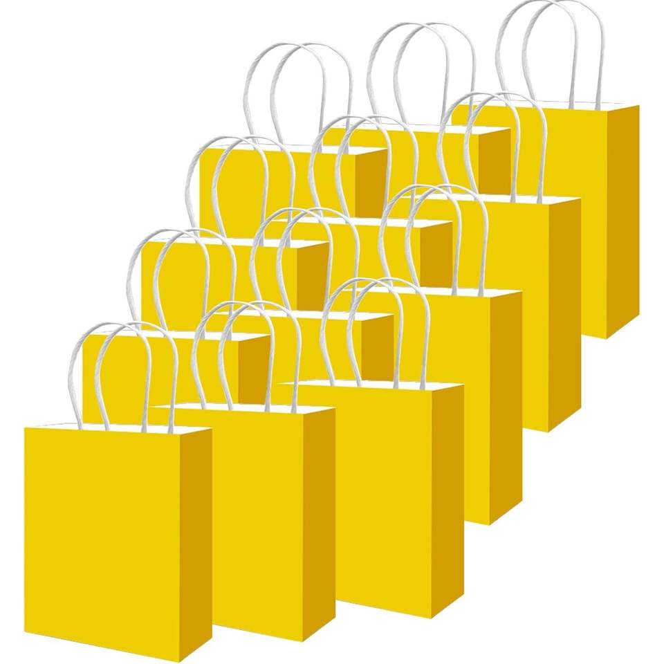 Confezione da 100 Sacchetti Regalo in Carta Giallo Brillante 21x7.6x15.2 cm con Manici, Multiuso