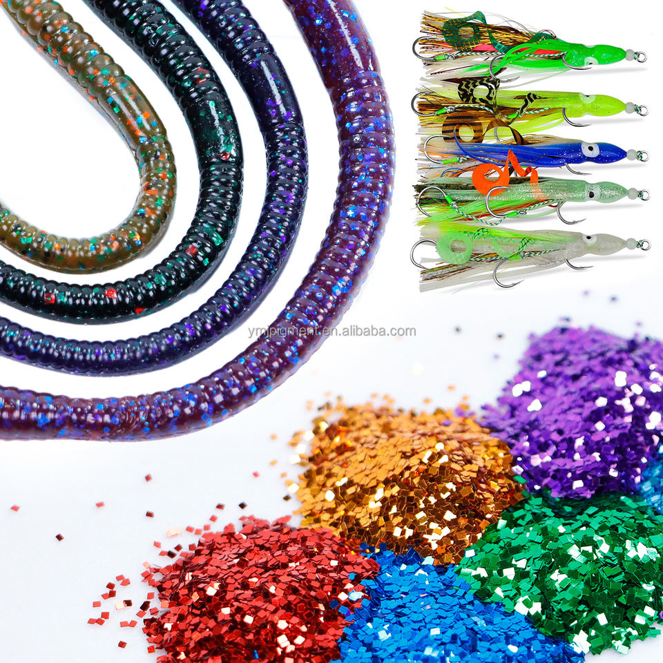 Glitter in Poliestere a Forma Quadrata Blu Verde Viola Oro in Bulk per Esche da Pesca, Esche Artificiali, Silicone e Plastica