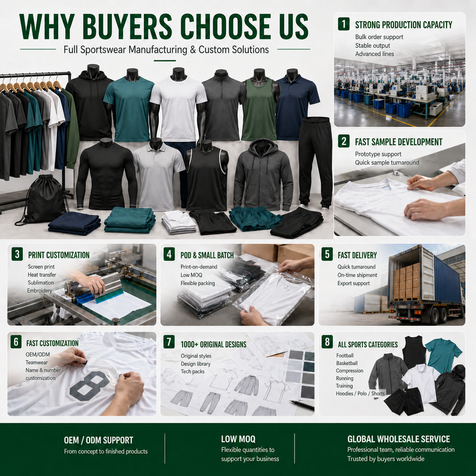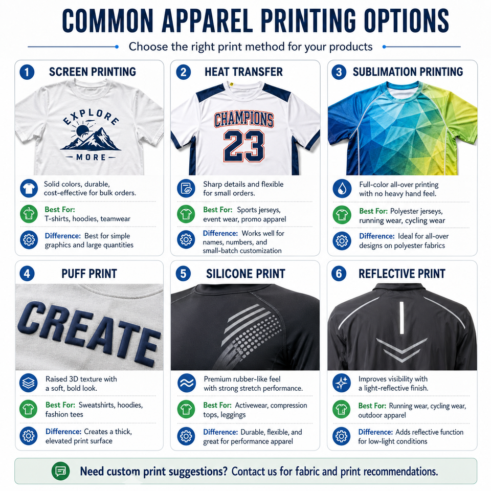 Logo position:Front, back, Left Sleeve, Right Sleeve, lower hem, back neck