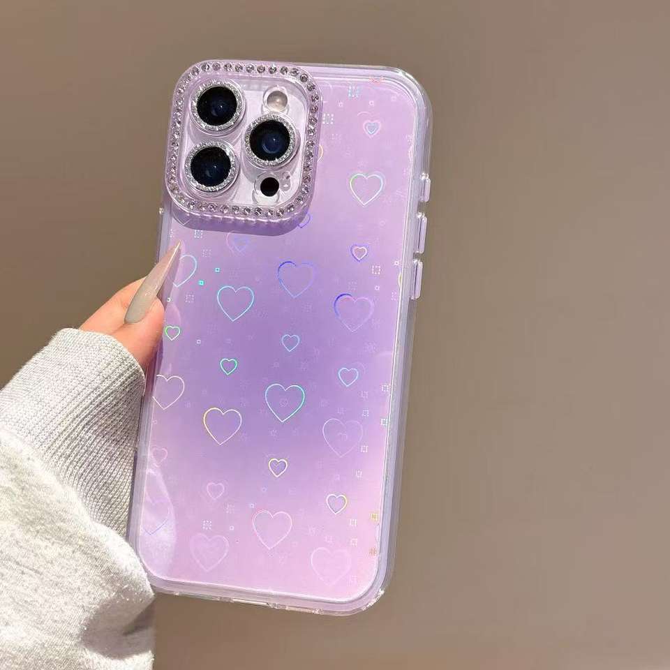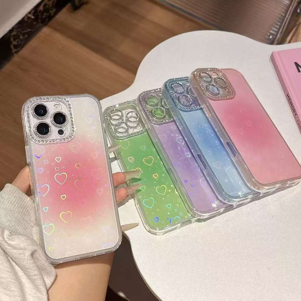 Custodia per telefono con Glitter alla rinfusa, arcobaleno con cuore trasparente, Cover per fotocamera con strass, anello per IPhone/Samsung