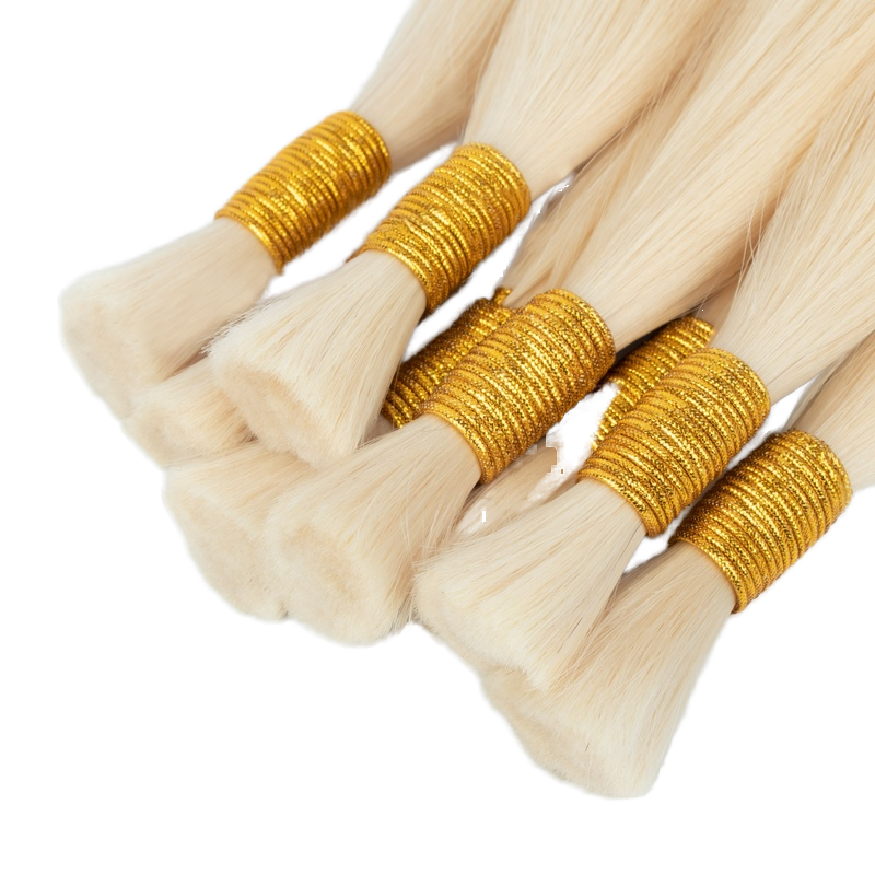 Alla rinfusa capelli umani per intrecciare all'ingrosso cuticole complete allineate in Europa vergine Remy capelli umani alla rinfusa bianco biondo marrone estremità spesse