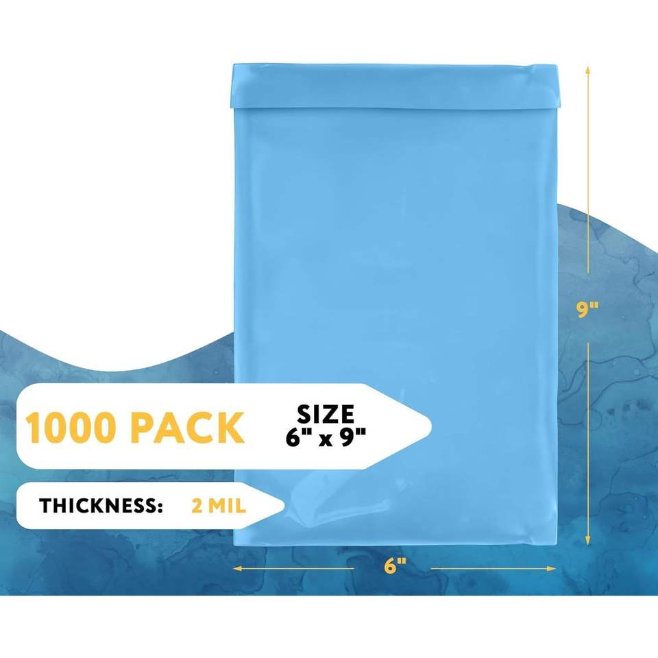 Bulk Pack 1000 Blue Poly Mailers 6 X 9 Self-Seal Waterproof Shipping Packages for Small Apparel 2 Mil Clothes for Small Business