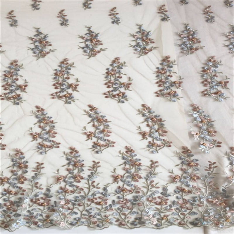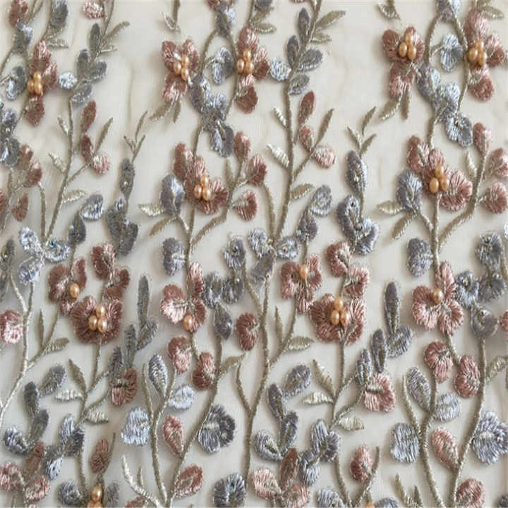 Bulk Price Popular Elegant Organza Floral Tulle Beaded Embroidery Fabric for Bridal Dress Wedding New Design