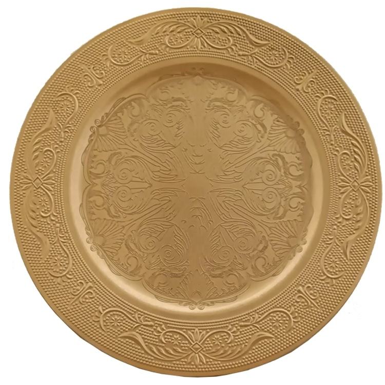 Sottopiatti Rotondi Decorativi in Plastica con Motivo Floreale Dorato per Catering e Tavola, Set da Cena a Prezzo all'Ingrosso