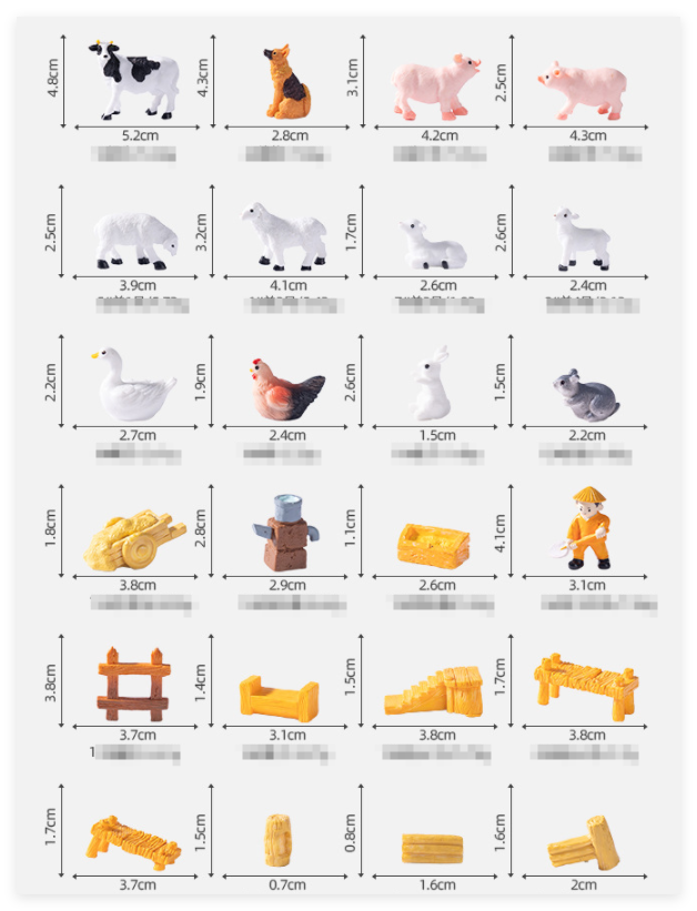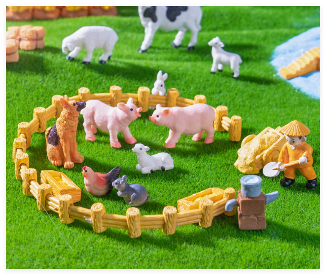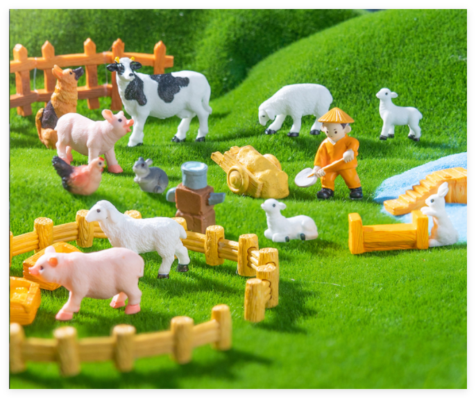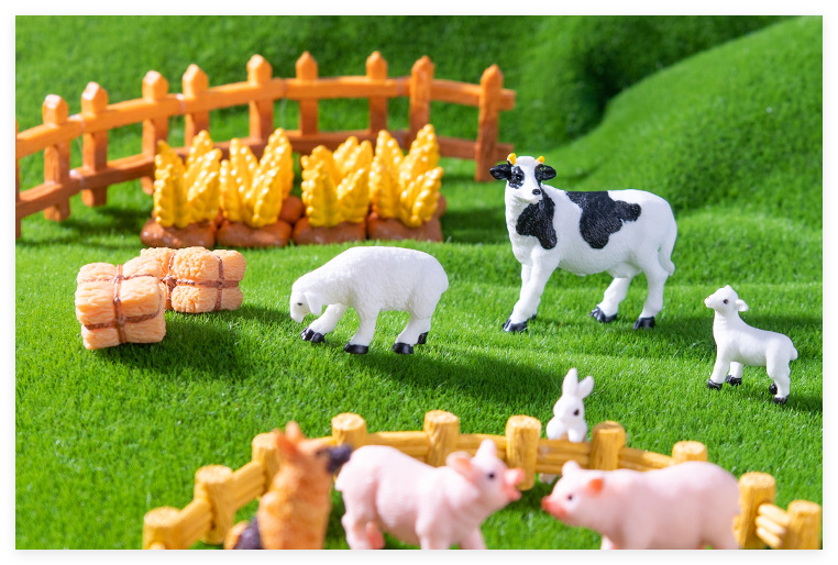 Resina sfusa maiale di mucca coniglio cane di pecora di pollo di plastica piccolo giocattolo Pvc animali da fattoria bambini educazione precoce collezione prescolare