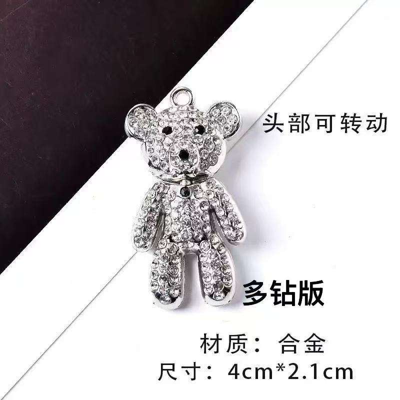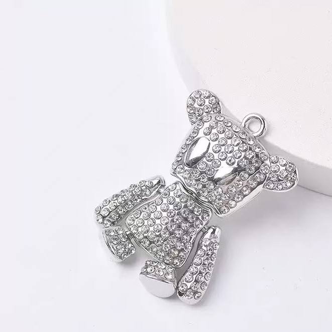 Fornitura all'ingrosso di ciondoli di lusso con orsetto in metallo tempestato di diamanti, per decorazione di custodie per cellulari, con gancio, fai da te