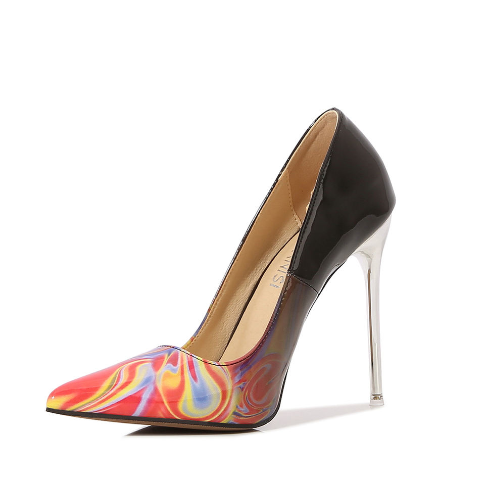 Ladies 11 CM Patent Leather Patchwork Heels