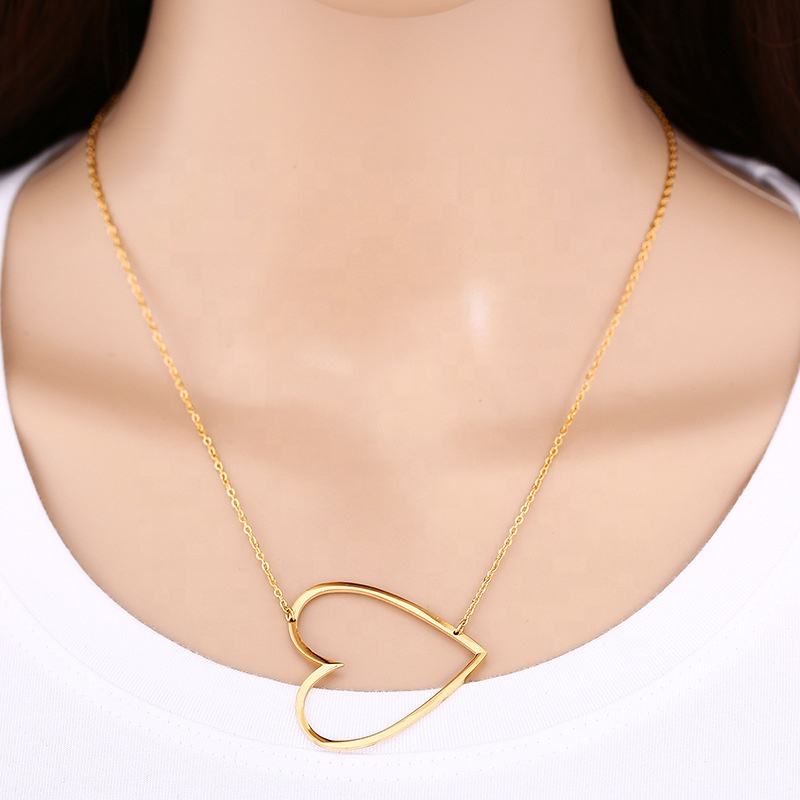 Commercio all'ingrosso all'ingrosso in acciaio inossidabile oversize sideway placcato oro grande cuore collana gioielli da sposa per le signore