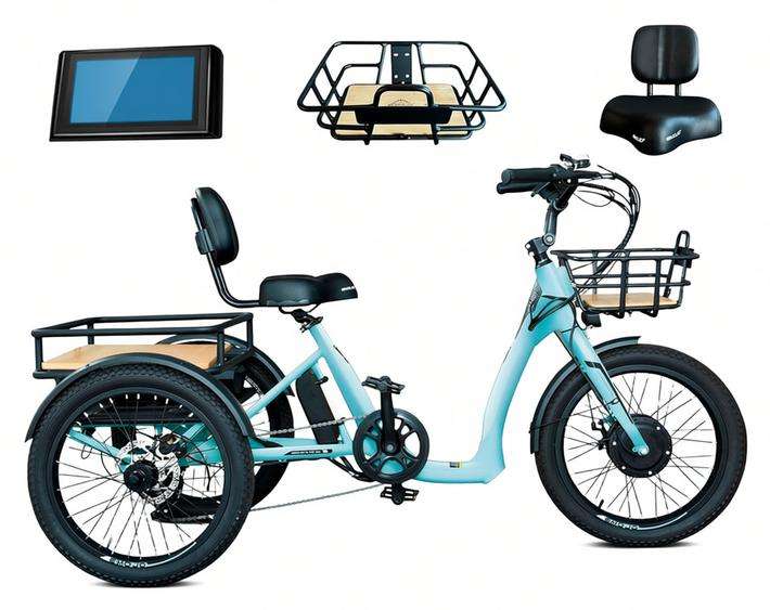 Triciclo Elettrico Bull 8.5\" a Pedalata Assistita per Adulti, Autonomia Fino a 160 km, Ebike Trike con Differenziale 500W 7 Velocità