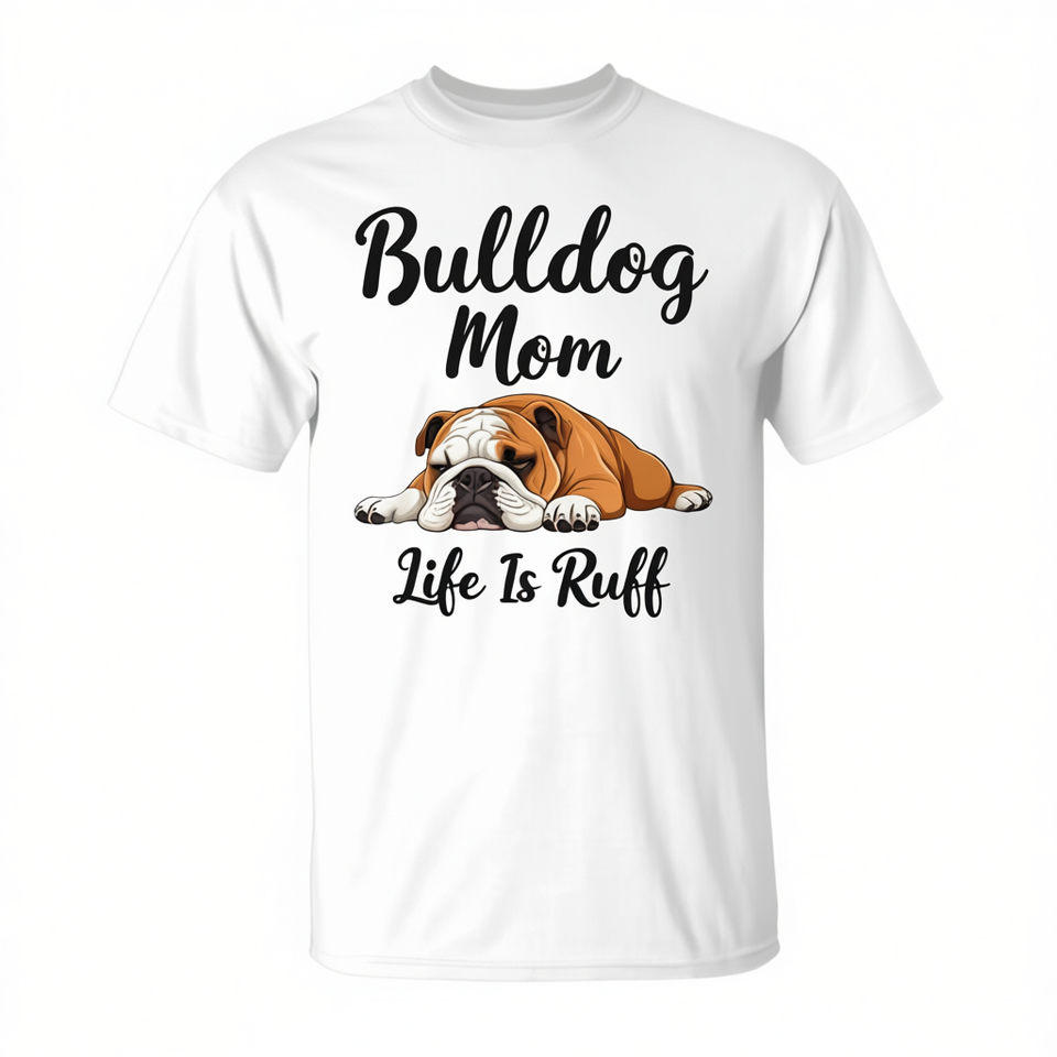 T-Shirt Promozionale per Amanti dei Bulldog: 'La Vita di una Mamma Bulldog è Un Po' Ruff'