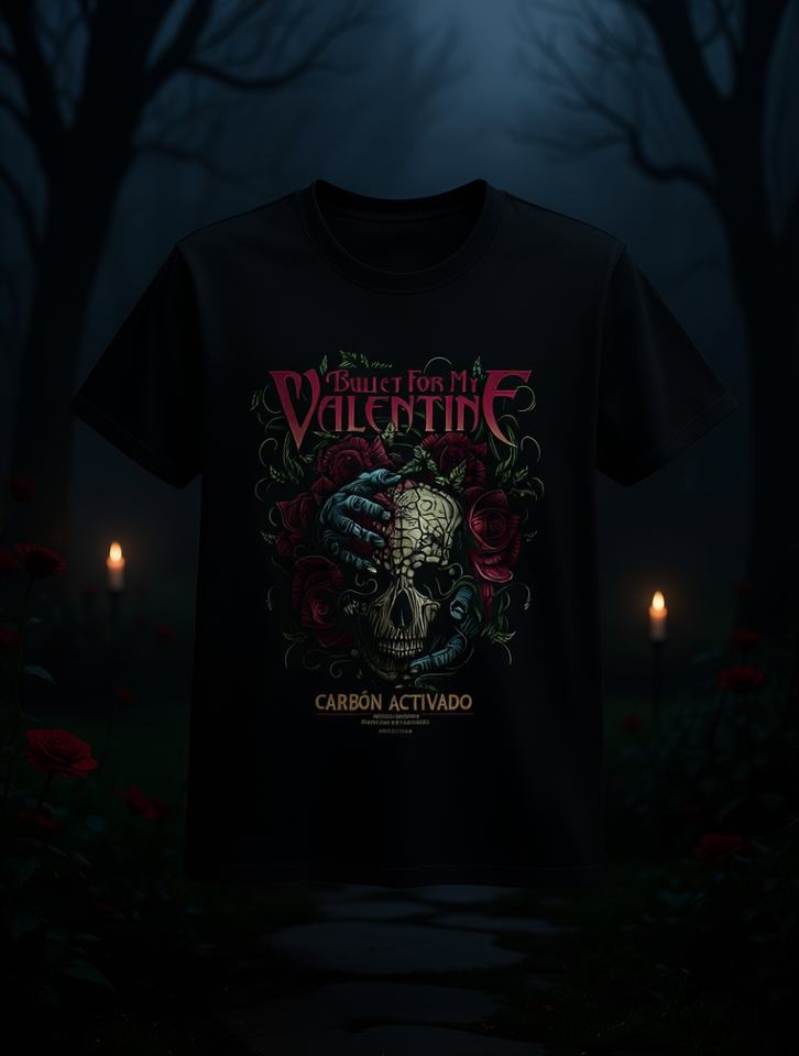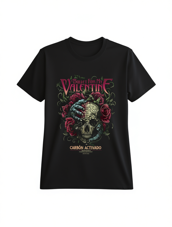 Bullet For My Valentine Women's Plus Size Gothic T-Shirt Skull Rose Print Round Neck Short Sleeve High Elasticity Casual Wear