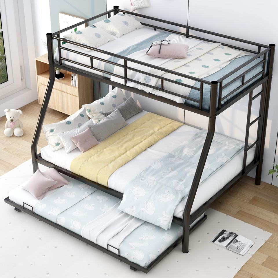 Letto a castello con rotelle, letti a castello tripli, letti a castello telaio per 3 ragazzi con due scale laterali e Guard Rail di sicurezza