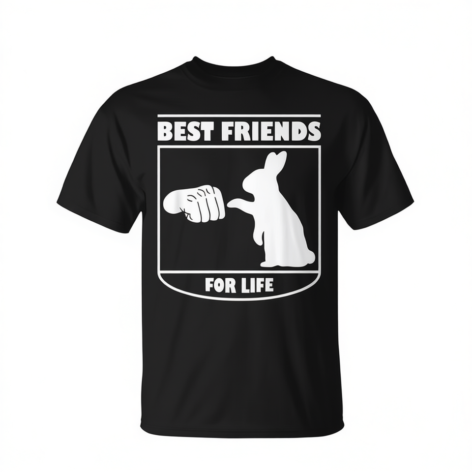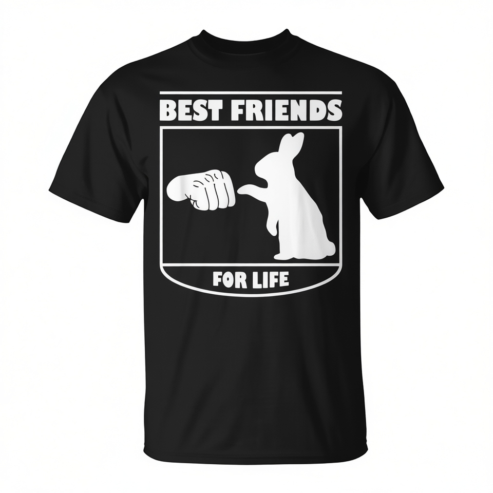 T-shirt con stampa serigrafica promozionale Bunny Friends For Life, simpatico design con coniglietti, unisex per adulti, a maniche corte e girocollo