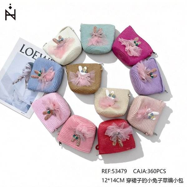 Borsa in paglia con coniglietto in gonna 12x14 cm per bambini, mini pochette alla moda