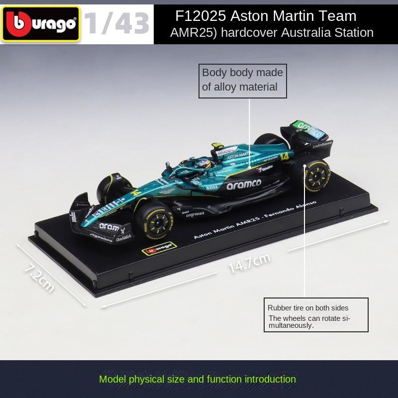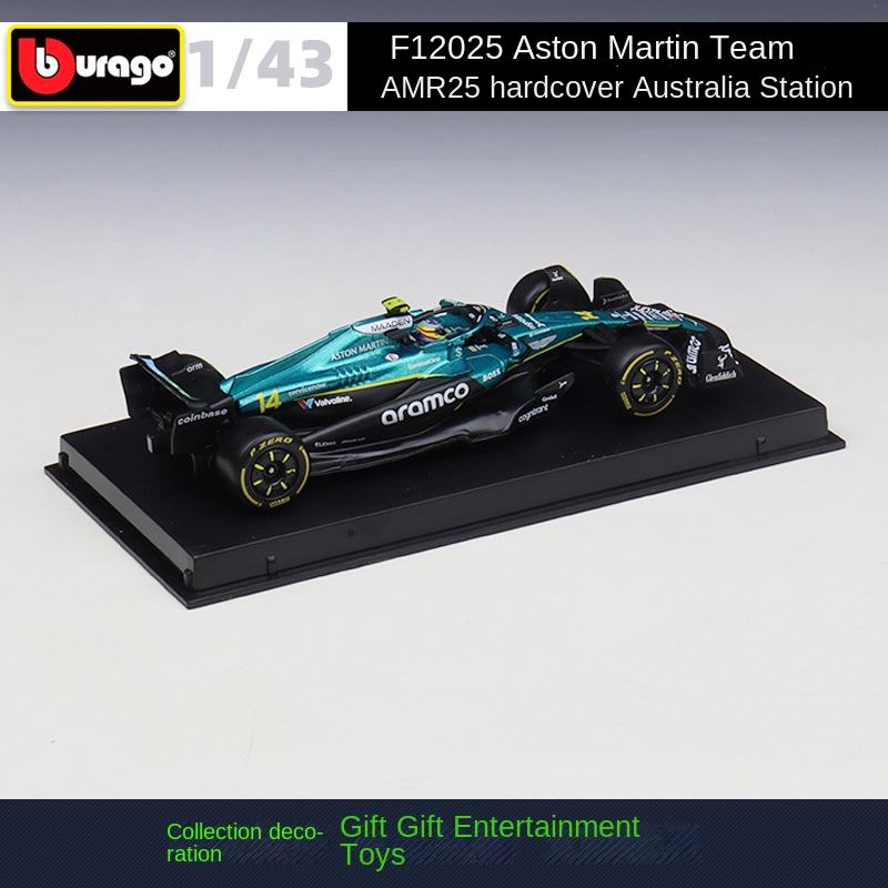 Modellino Burago 1:43 Aston Martin F1 AMR25, Auto di Formula 1, Veicolo Simulato Alonso Redbull, Auto in Metallo Pressofuso