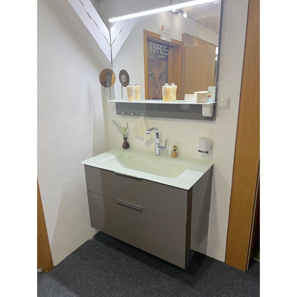 Burgbad EQIO Mobili da bagno 93cm Grigio lucido Lavabo in vetro + Mobile specchiera