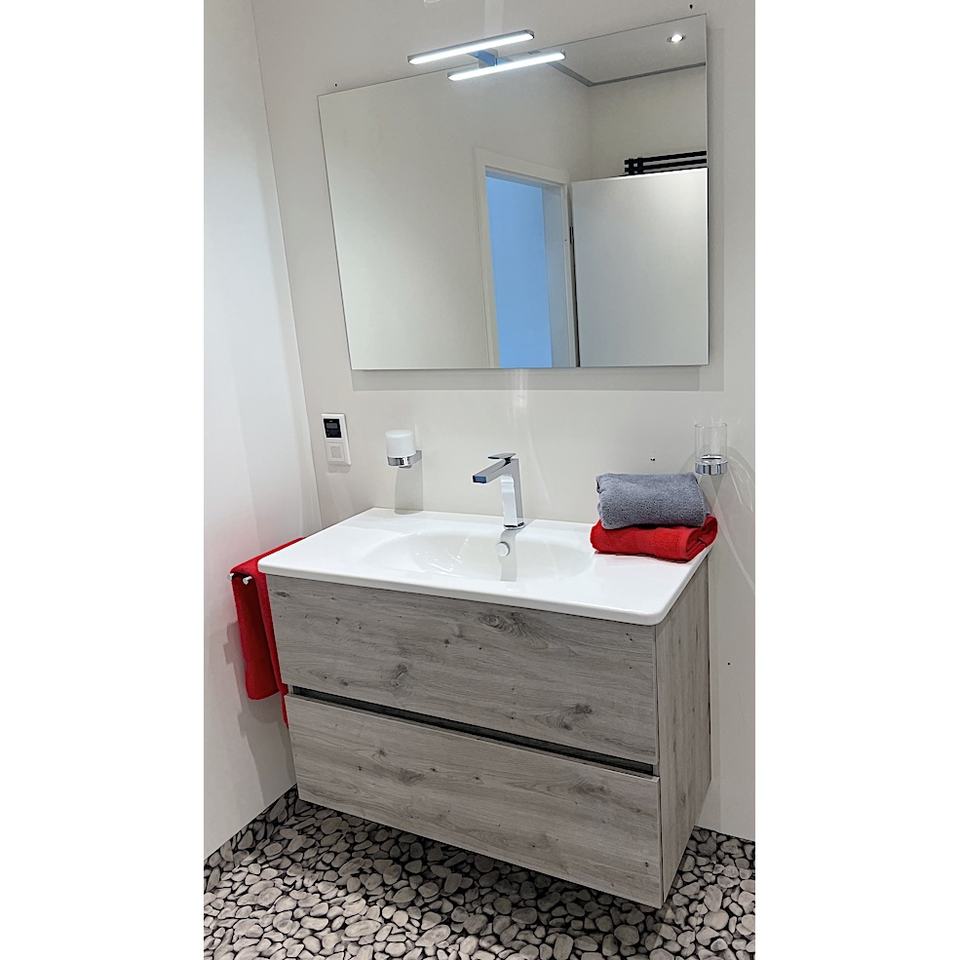 Mobile da Bagno Sospeso Kamalu 80cm TOD-80L con Lavabo in Ceramica Integrato e 2 Cassetti in Legno Massello