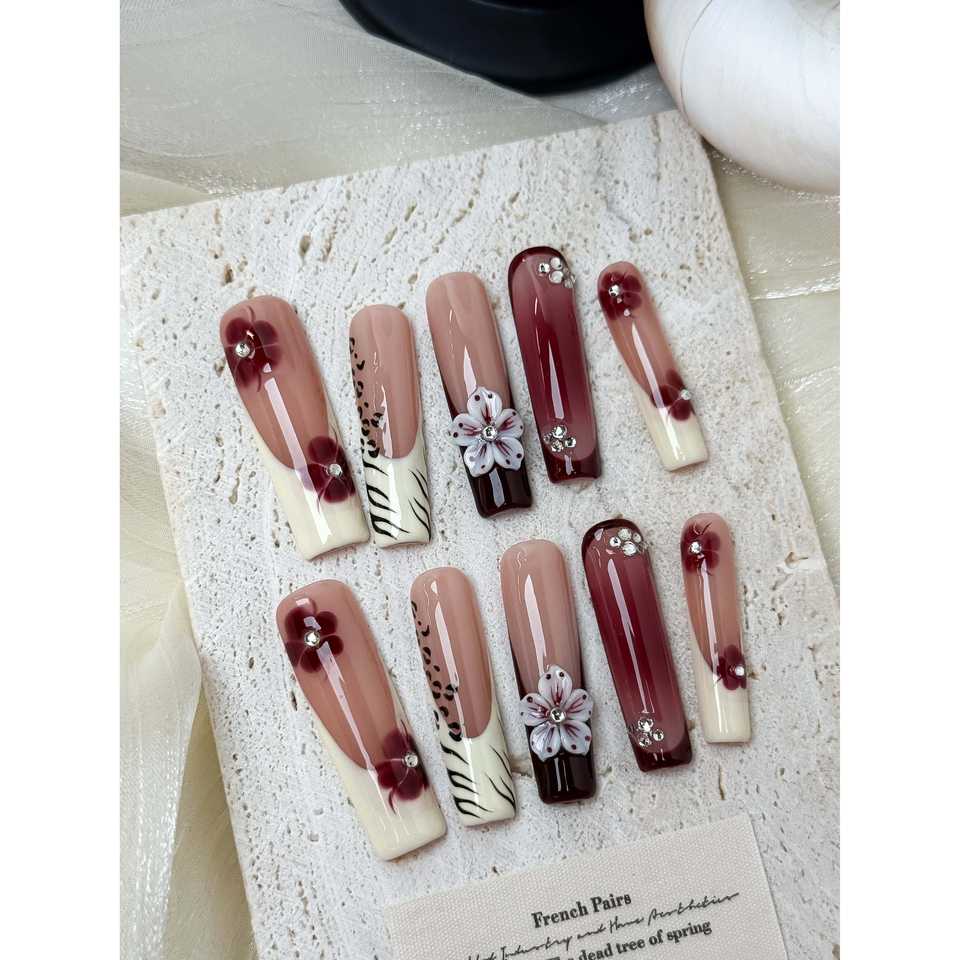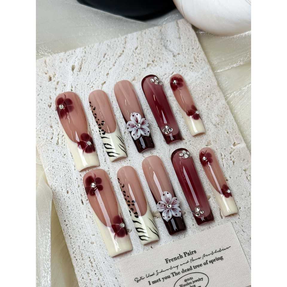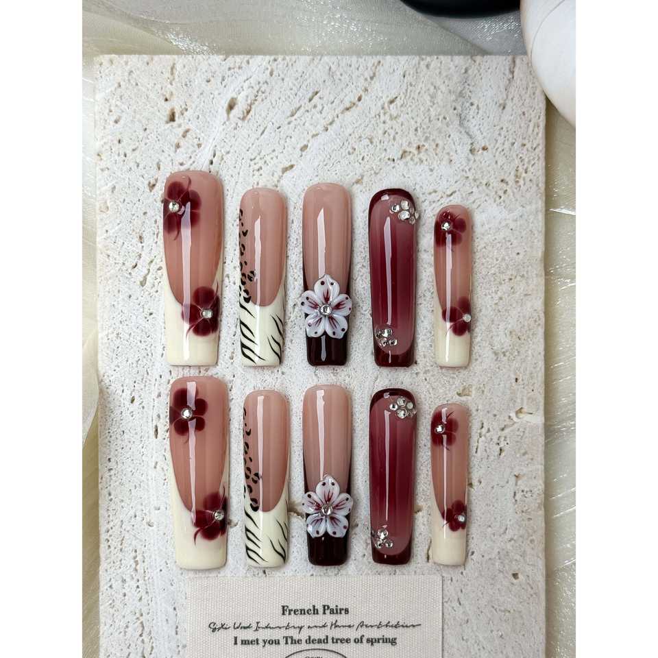 Accessorio Premium in Strass con Motivo Floreale Bordeaux