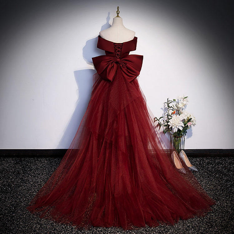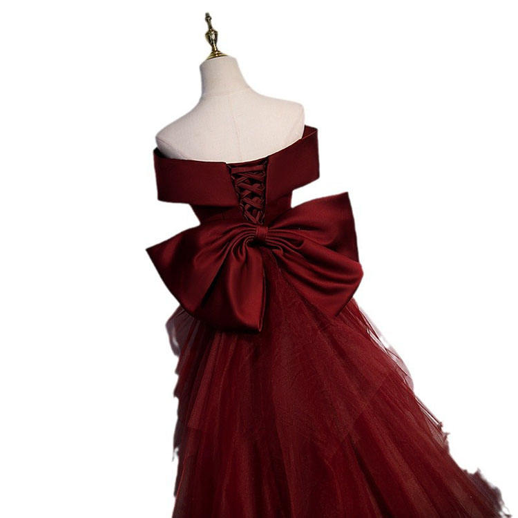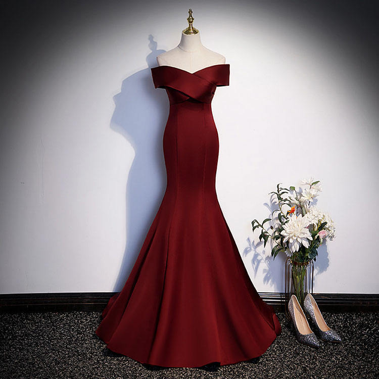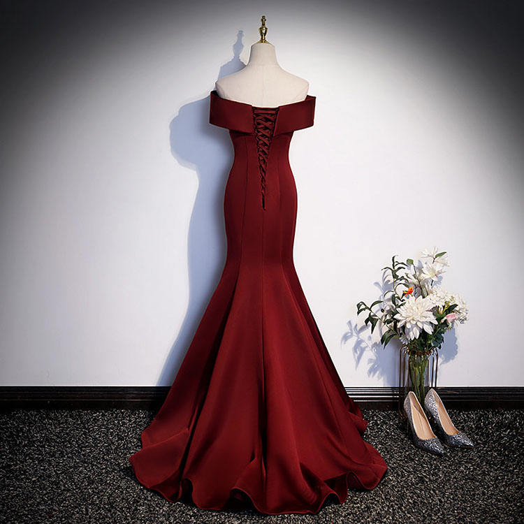Borgogna gonna a coda di pesce logo personalizzato maglia abito da sera fabbrica direttamente Designer lungo abito Host all'ingrosso