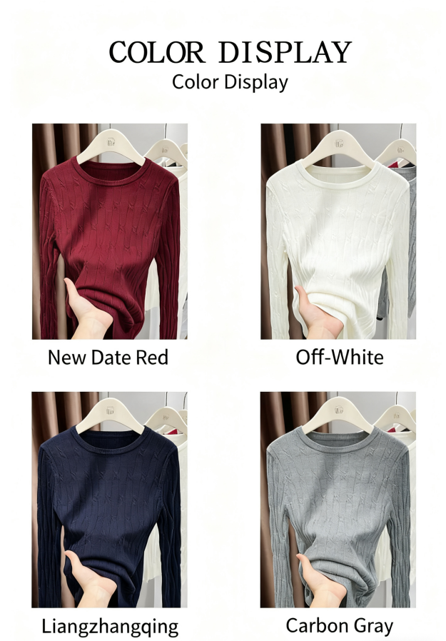 Burgundy Round Neck Knit Sweater Women Fall Winter Base Layer Loose Slim Wool Pullover Chic Long Sleeve Top