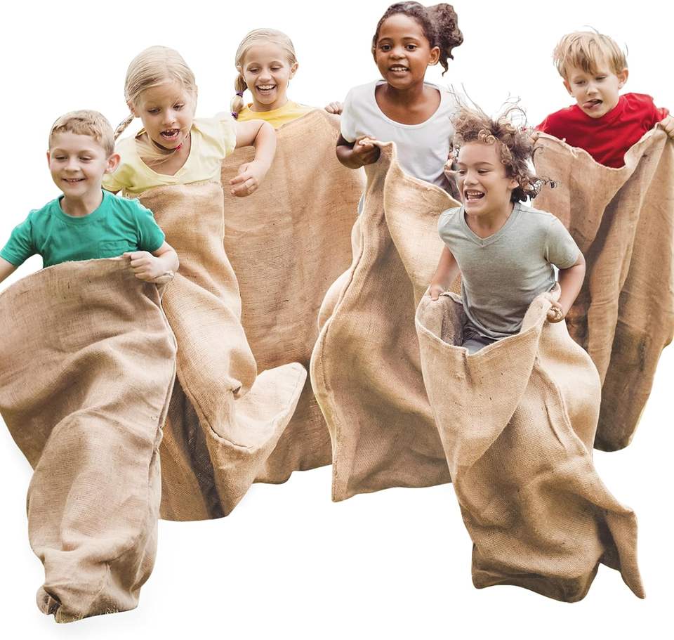 Sacco di patate in juta borse da corsa grandi sacchi di iuta naturale per bambini adulti riutilizzabili eco-friendly con manico a tracolla borsa