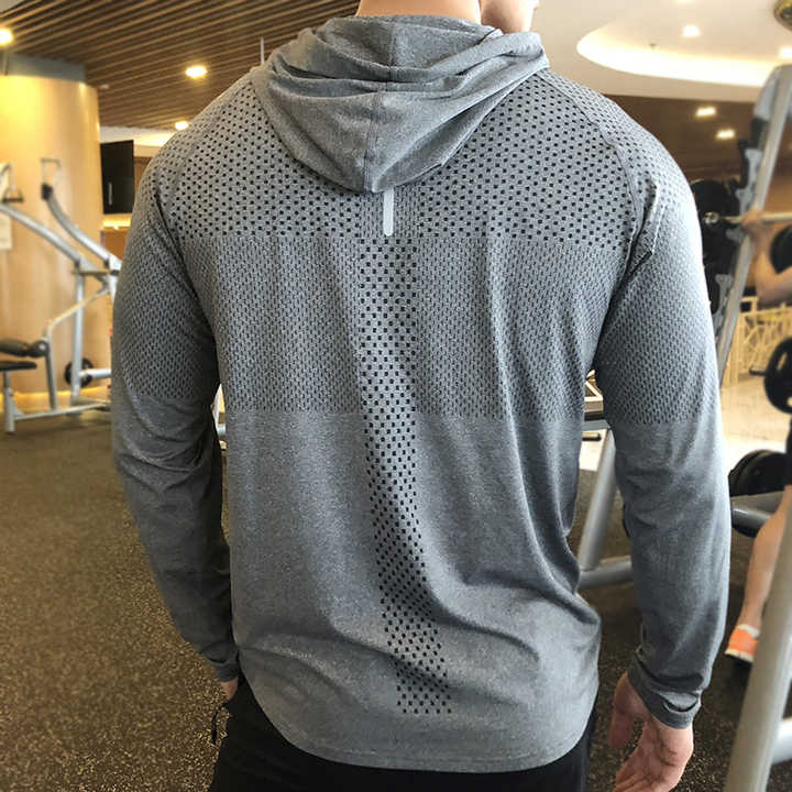 Maglietta da Corsa Spessa Buruite per Uomo, Manica Lunga con Cappuccio, T-Shirt da Palestra, Allenamento Fitness, Asciugatura Rapida, Traspirante, Sportiva