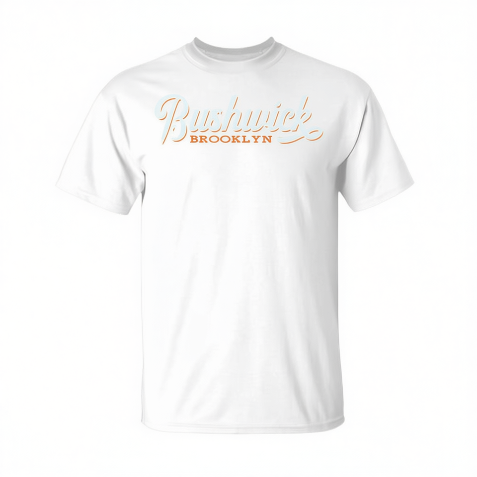 T-shirt Bushwick Brooklyn stile retrò bianca unisex girocollo a maniche corte promozionale