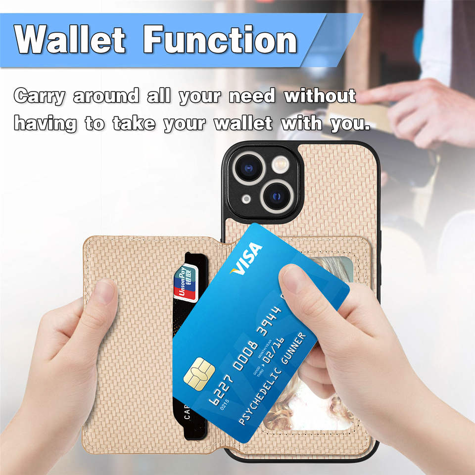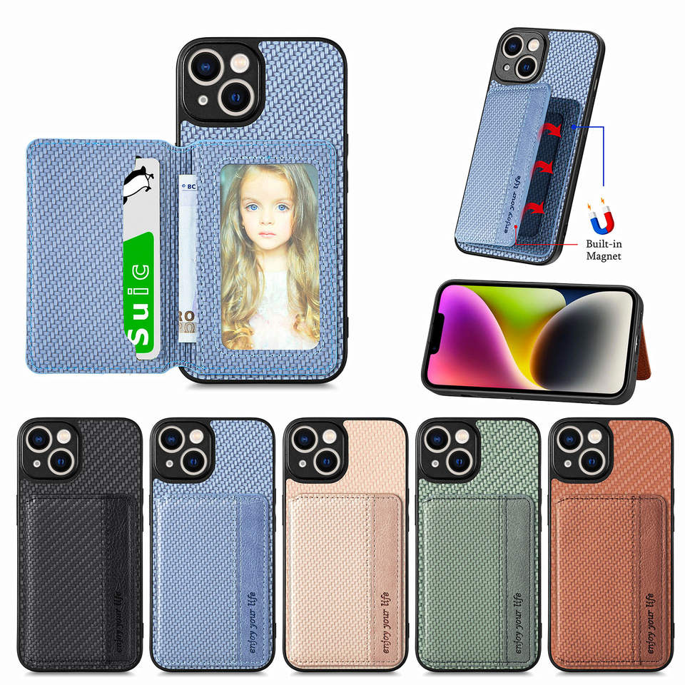 Business Card Case Carbon Fiber Wallet Phone Case for iPhone 14 Pro Max Magnetic Leather Phone Case With Card Holder for Samsung