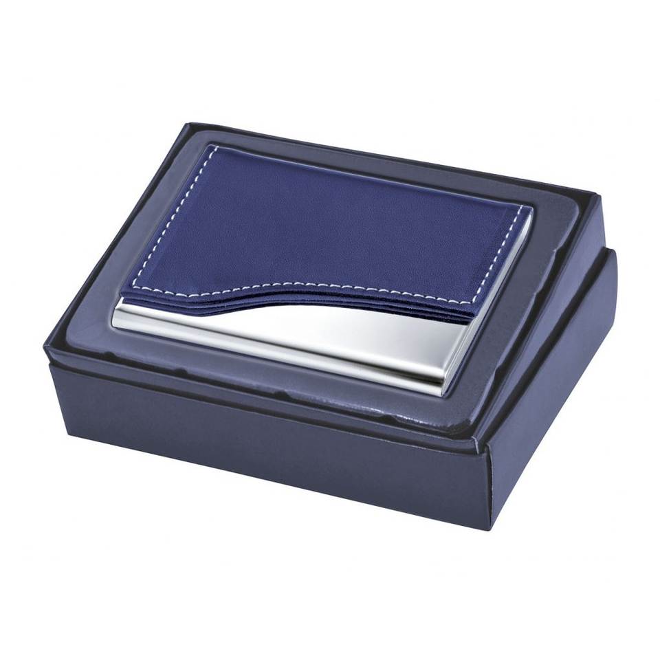 Porta biglietti da visita in metallo e pelle PU blu con cornice argentata per uomo e donna