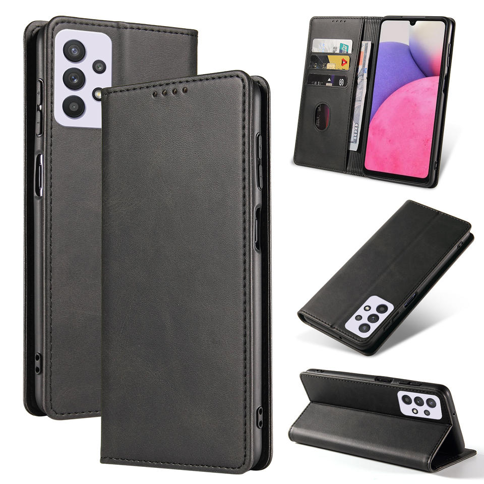 Custodia a libro magnetica in pelle con motivo a pelle di vitello, design business, per Samsung Galaxy S26 A56 A55 5G A05 A14 A26 A36 A17 A07