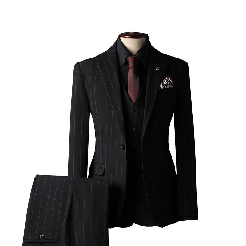 Abito formale da uomo di alta qualità abito da sposa stile britannico a righe vestito monopetto piatto con cerniera anteriore