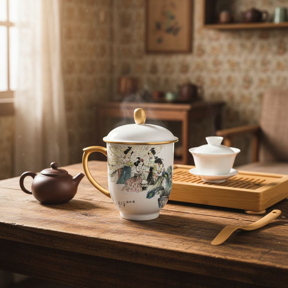 Tazza in Porcellana Bianca per Regalo Aziendale, Disegno Artigianale Raffinato, Adatta per Varie Occasioni