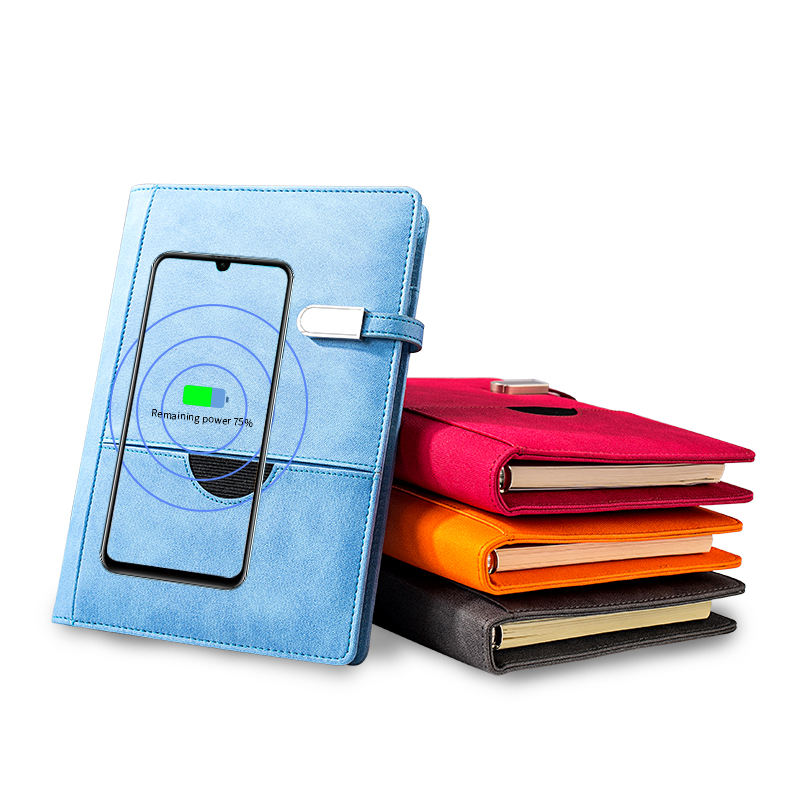 Regali aziendali In Pelle Più Nuovo nota libro con la banca di potere di Affari Logo Personalizzato del taccuino del caricatore senza fili