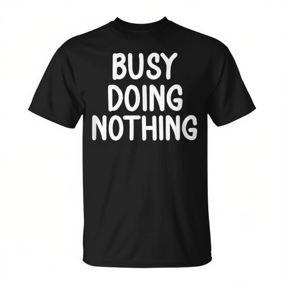 T-shirt unisex per adulti con stampa serigrafica, girocollo, manica corta, con scritta 'Busy Doing Nothing', divertente e sarcastica.