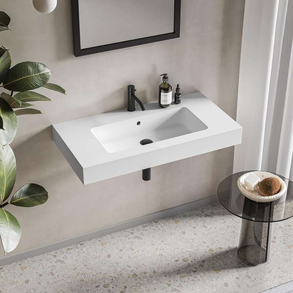 Butterfly 80 cm Semi-Recessed Marble-Resin Bathroom Sink Matt White Dimensions 100x46x10 cm