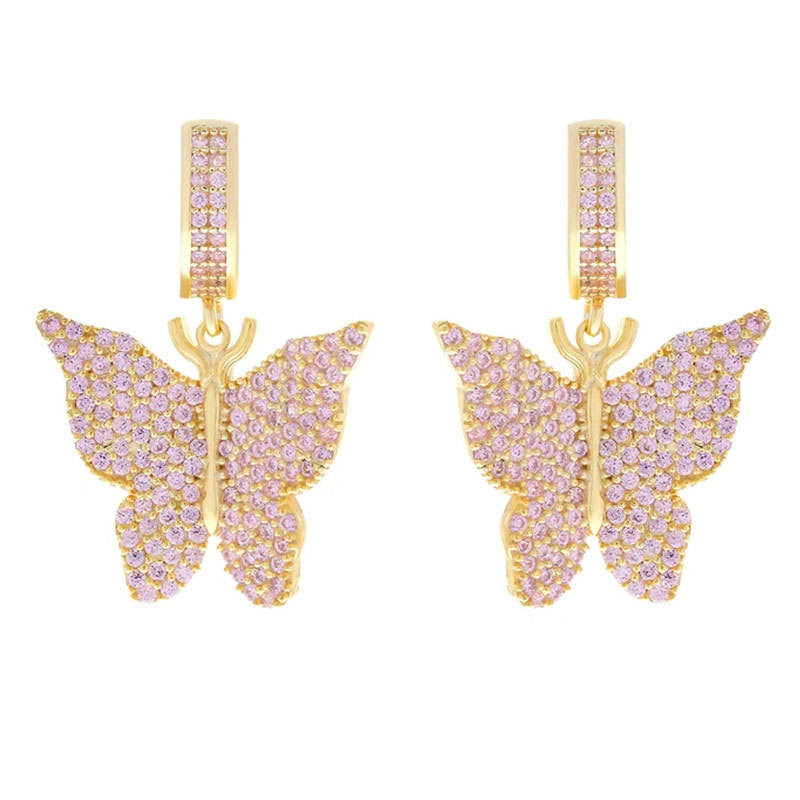 Butterfly Drop Earrings Pink Crystal 925 Silver Plated Women's Everyday Wear Jewelry