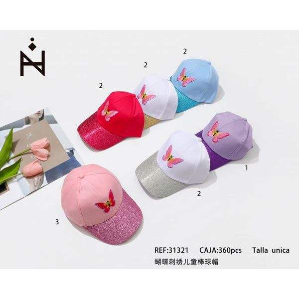 Cappellino da Baseball per Bambini con Ricamo a Farfalla, Rosa, Rosso, Bianco, Blu, Viola, con Visiera Glitterata, Taglia Unica
