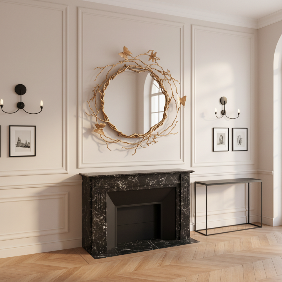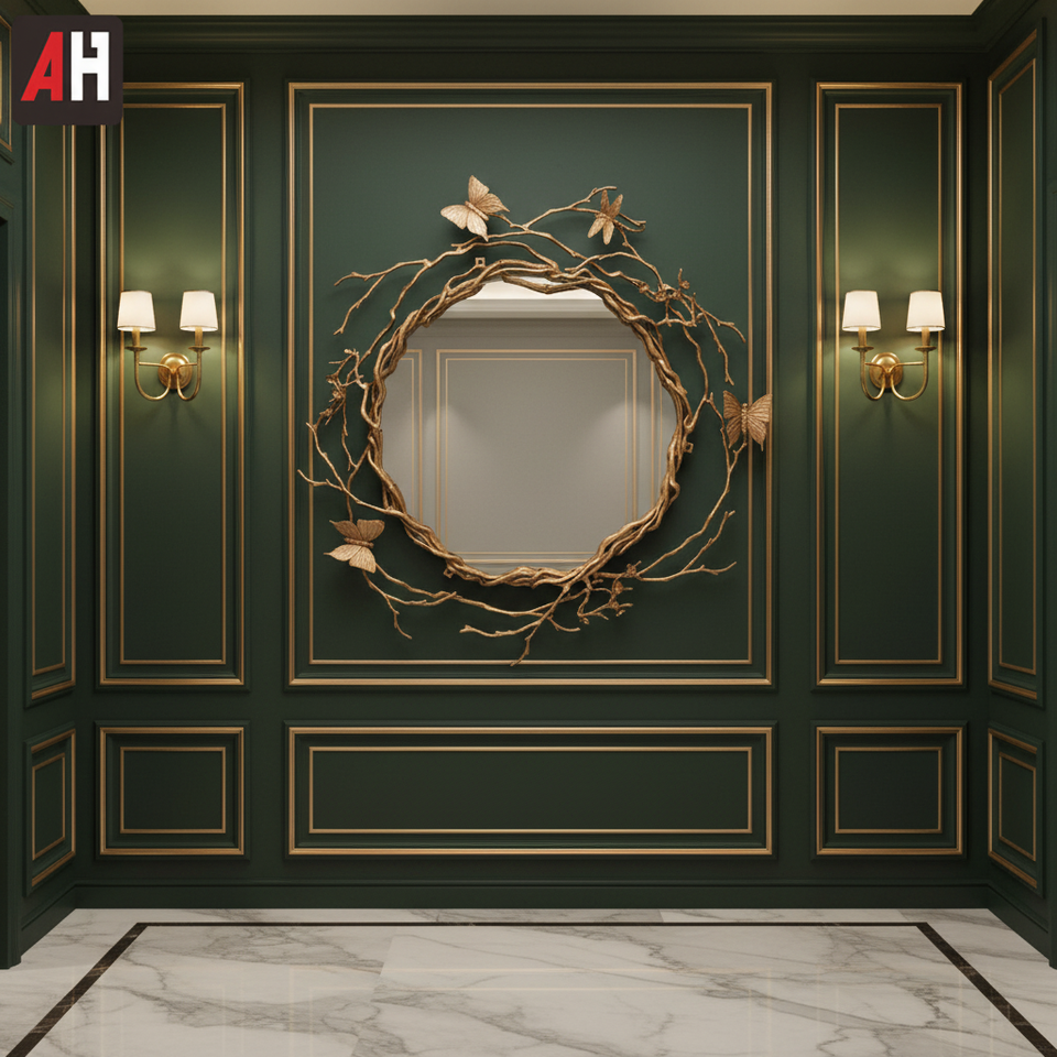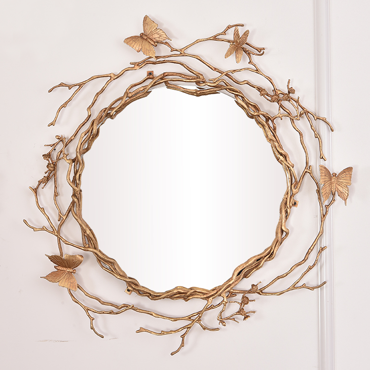 Adore Home M3006 Specchio da Parete Artistico a Farfalla di Lusso in Rame Puro Fatto a Mano di Alta Qualità per Soggiorno, Camera da Letto, Studio, Villa, Hotel