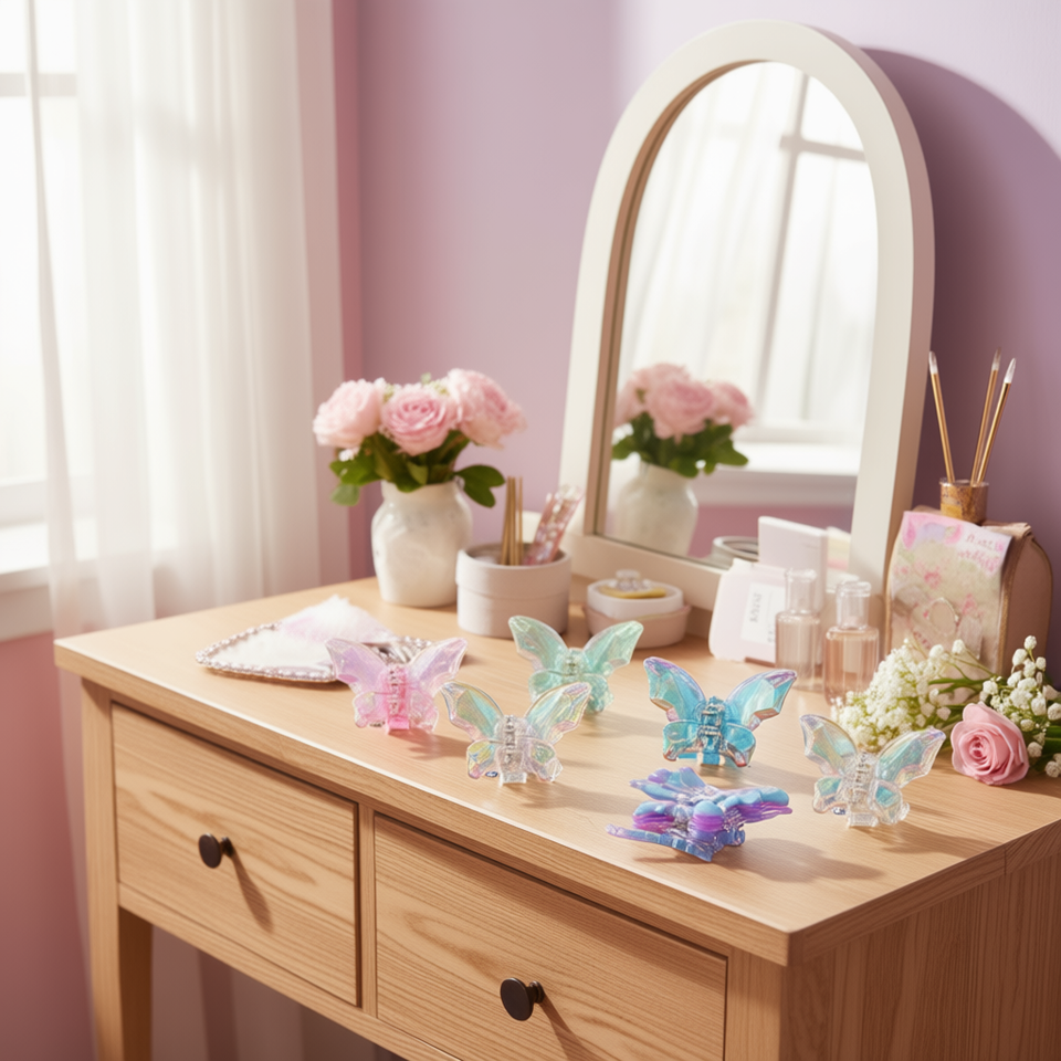 Fermaglio per capelli a forma di farfalla, colore brillante, monofacciale, 8,5 cm, per donne e ragazze
