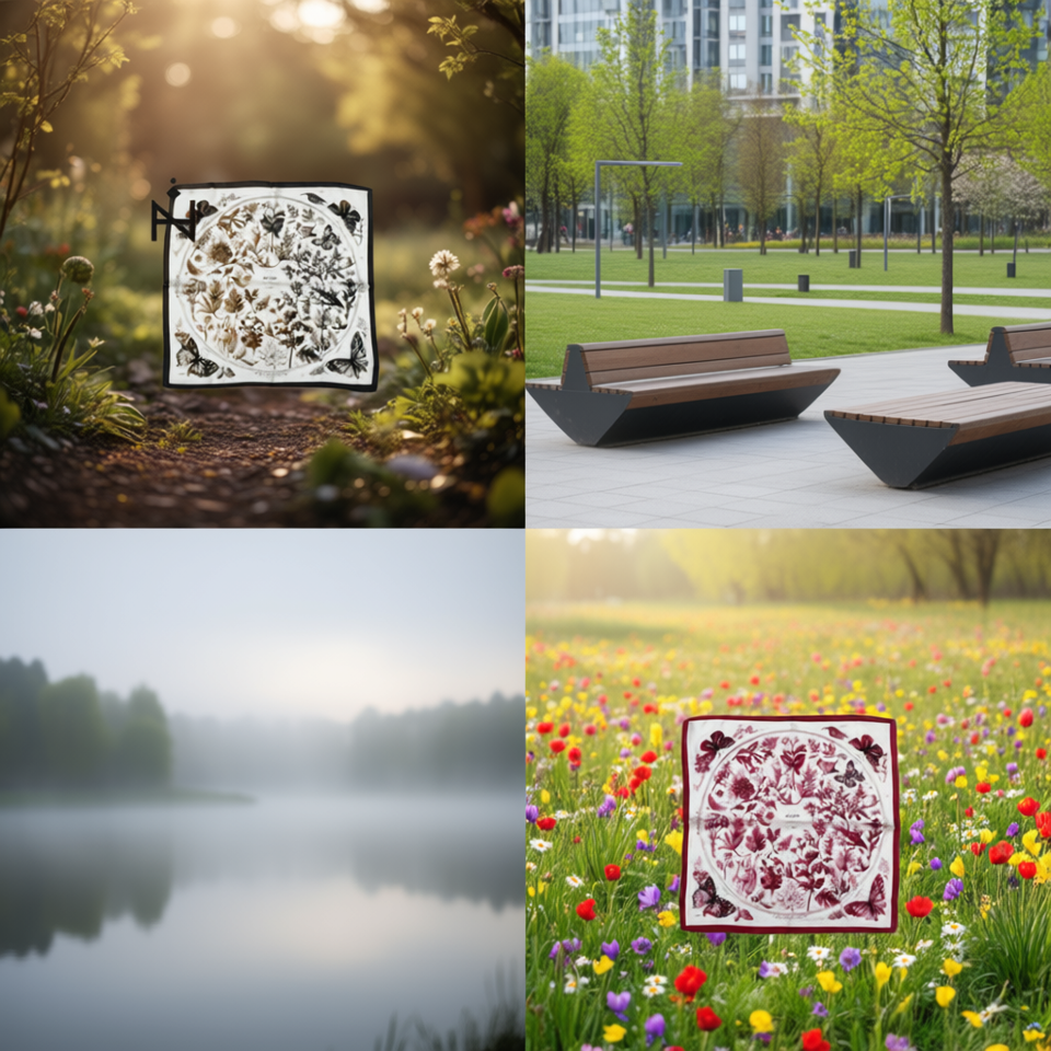 Foulard Quadrato con Stampa Floreale a Farfalla 70x70Cm, Accessorio Moda Donna