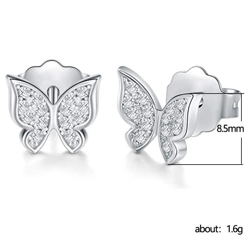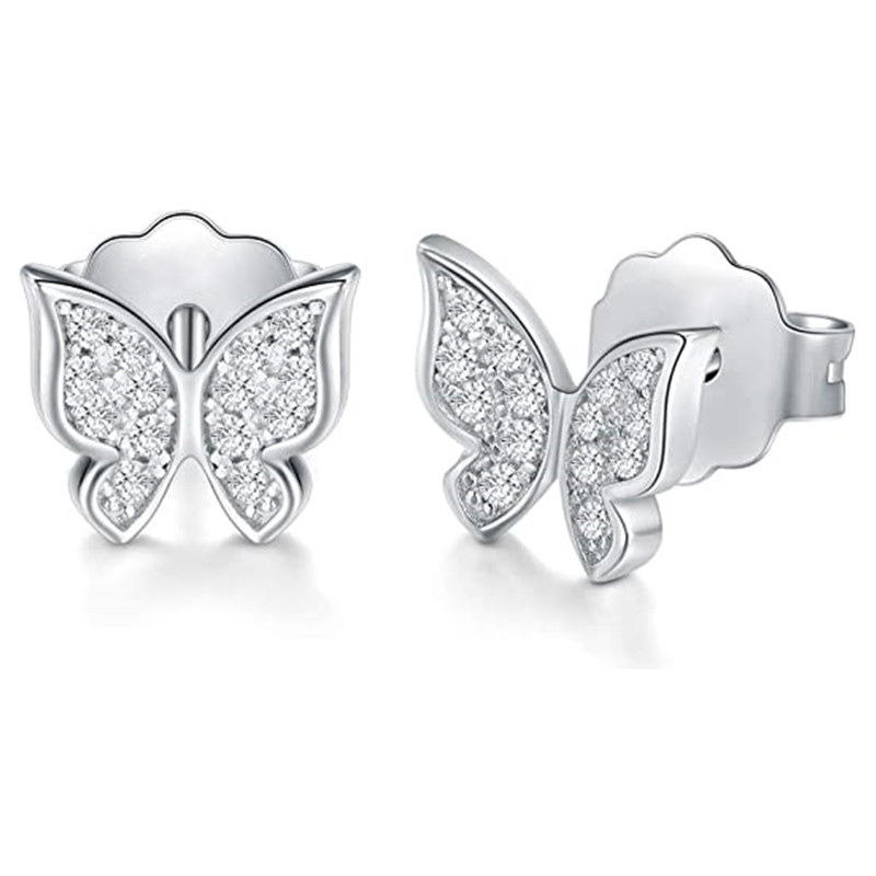 Butterfly Stud Earrings 925 Silver Crystal Rhinestone Women's Everyday Wear Micro Insert Round Brilliant Cut