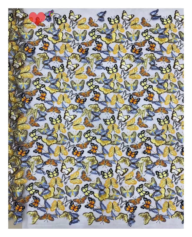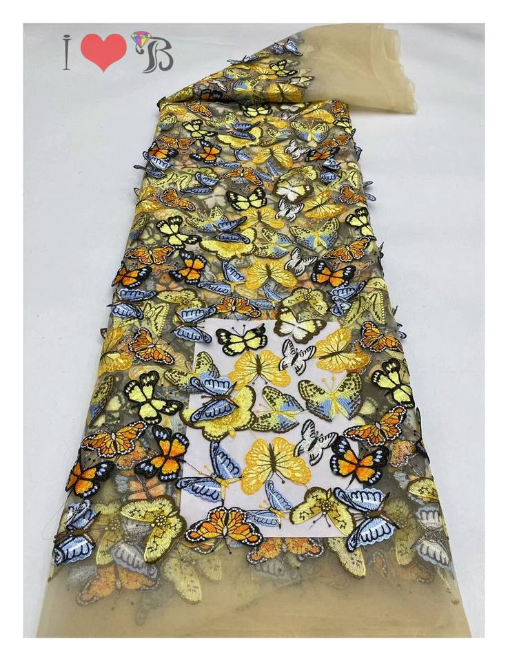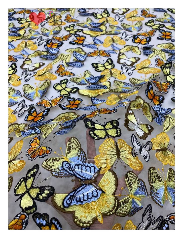 Butterfly element Lace Fabric Embroidery Elegant 3d Floral Embroidered French Tulle Lace Fabric for Party Evening Dress