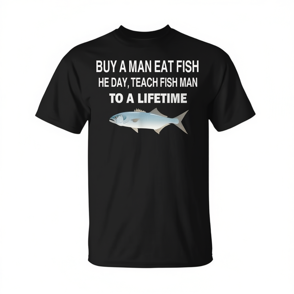 Acquista la maglietta 'Lifetime Teach Man to Fish' - Un giorno che mangia pesce e insegna a pescare'