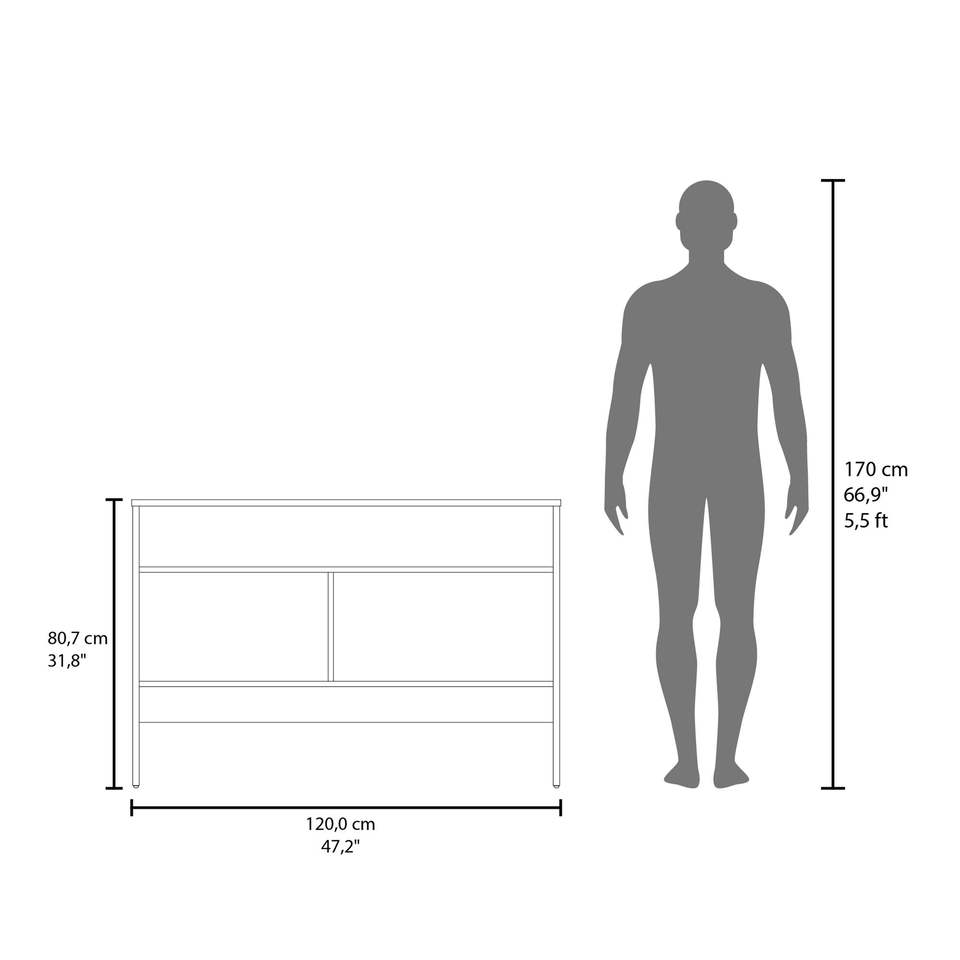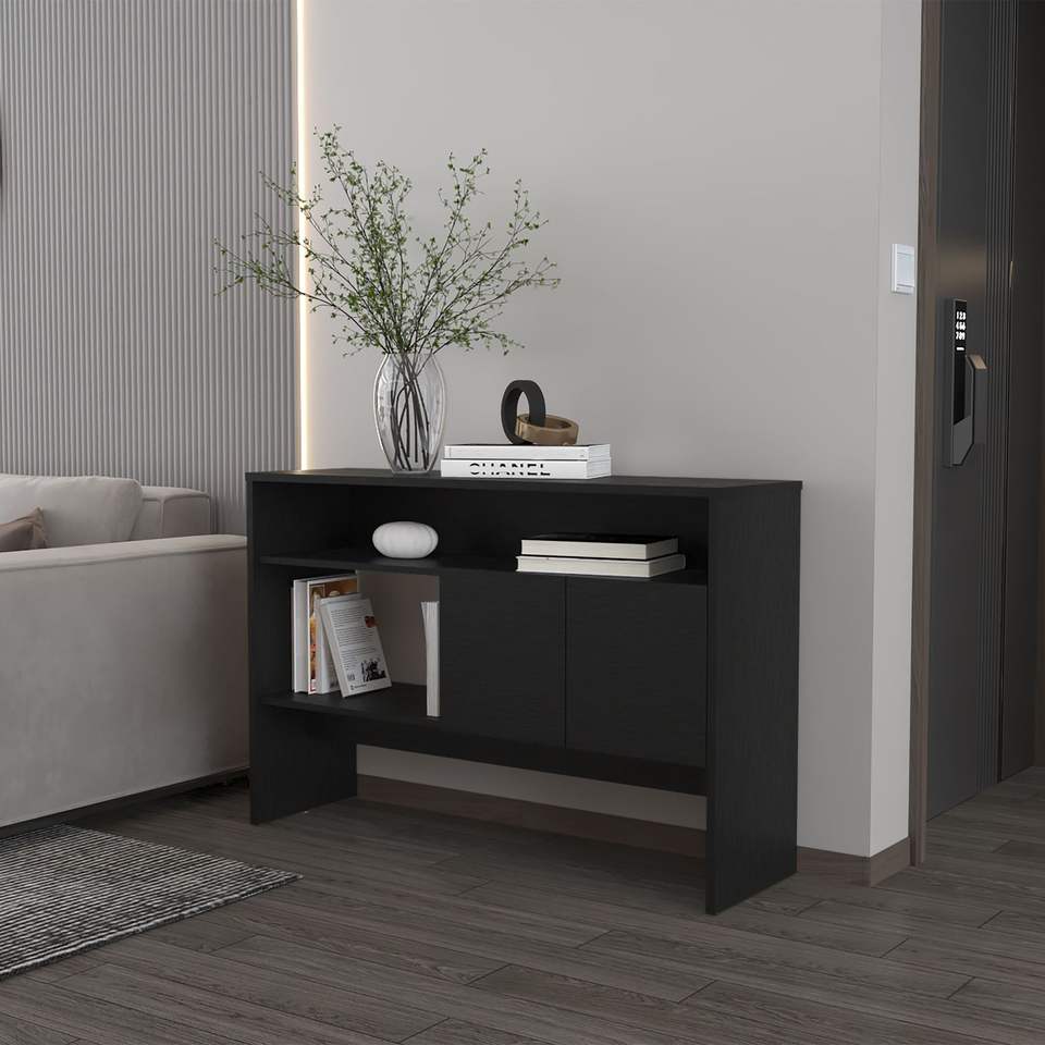 Tavolo Console Bylas in Melamina Nera con Due Ante Aperte per lo Stoccaggio
