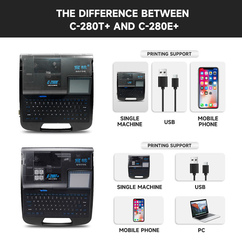 C-280T PVC Wire Heat Shrinkable Tube Cable ID Marking Printer Thermal Paper Pipe Casing Tube Drivepipe Printing Label Maker
